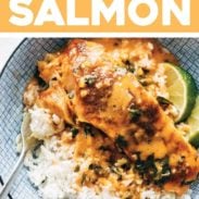 I made this for an anniversary dinner and my husband and I both agreed it was the best meal we’ve had in a long time! Tasted like we went to a restaurant but was so quick and easy to make. I only used 2 salmon portions but I like another commenter’s suggestion to use the leftover curry sauce with chickpeas. I also didn’t have ginger or lemongrass paste but it was still delicious!
