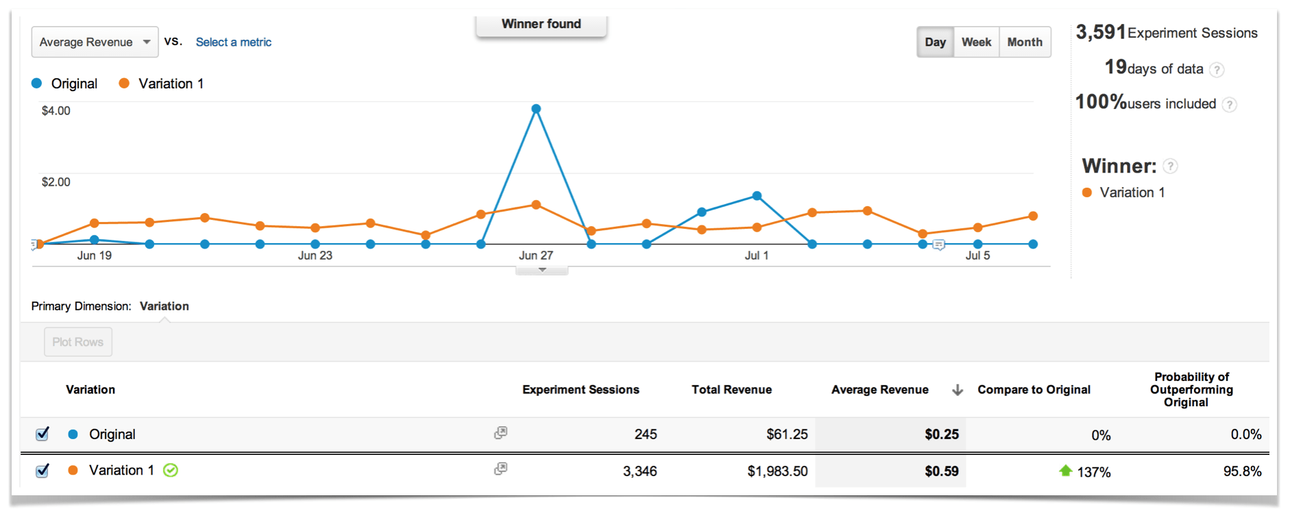 I made this change on July 4th, and since then the viewability has gone up 14% (that’s the average between the two ads). Mission partially accomplished! I say partially because we still have some work to do to get that to a good number, but it’s an improvement nonetheless.